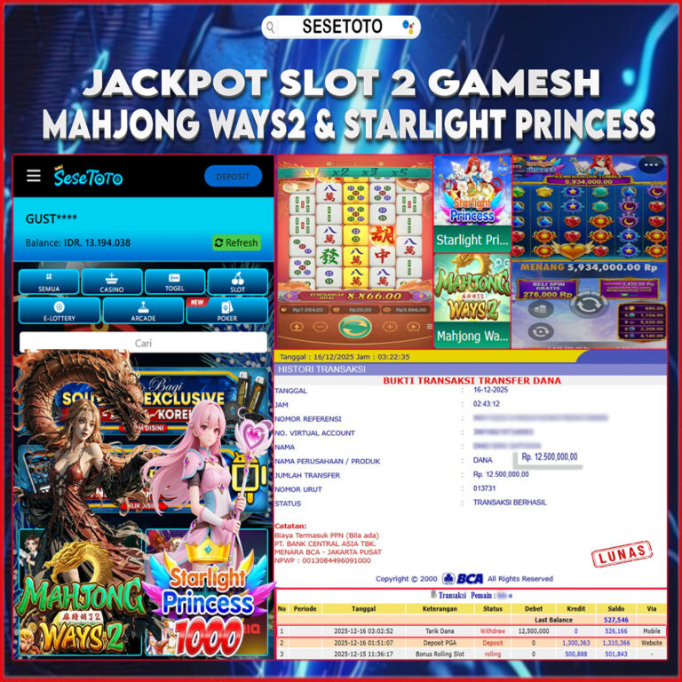 JACKPOT SLOT MAHJONG WAYS 2 & STARLIGHT PRINCESS RP 12.500.000